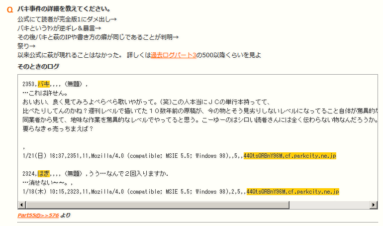 - スレ立てていた奴が「萩原一至本人」だと指摘されたレス等を削除し出して「正体」が割れたバスタードスレ