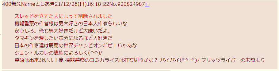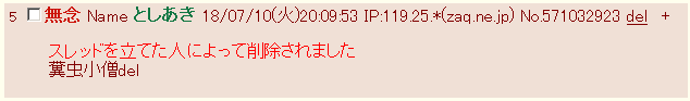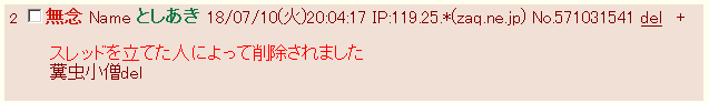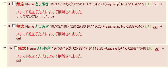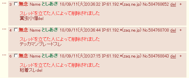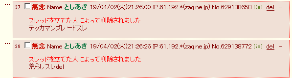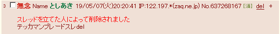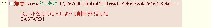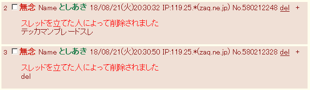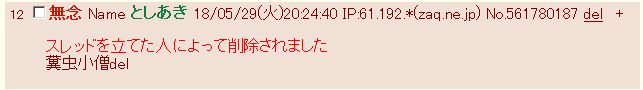 ・怪しまれたせいか自分の書き込みを含めてスレごと削除しようとするが失敗し、