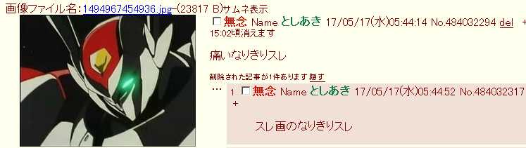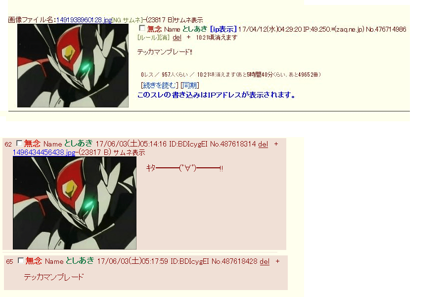 スレとは全く無関係なテッカマンブレードの画像を貼ったりする奴が出る