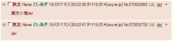 ・ID消えたと思ったのか時間経ってから書き込みに来るID