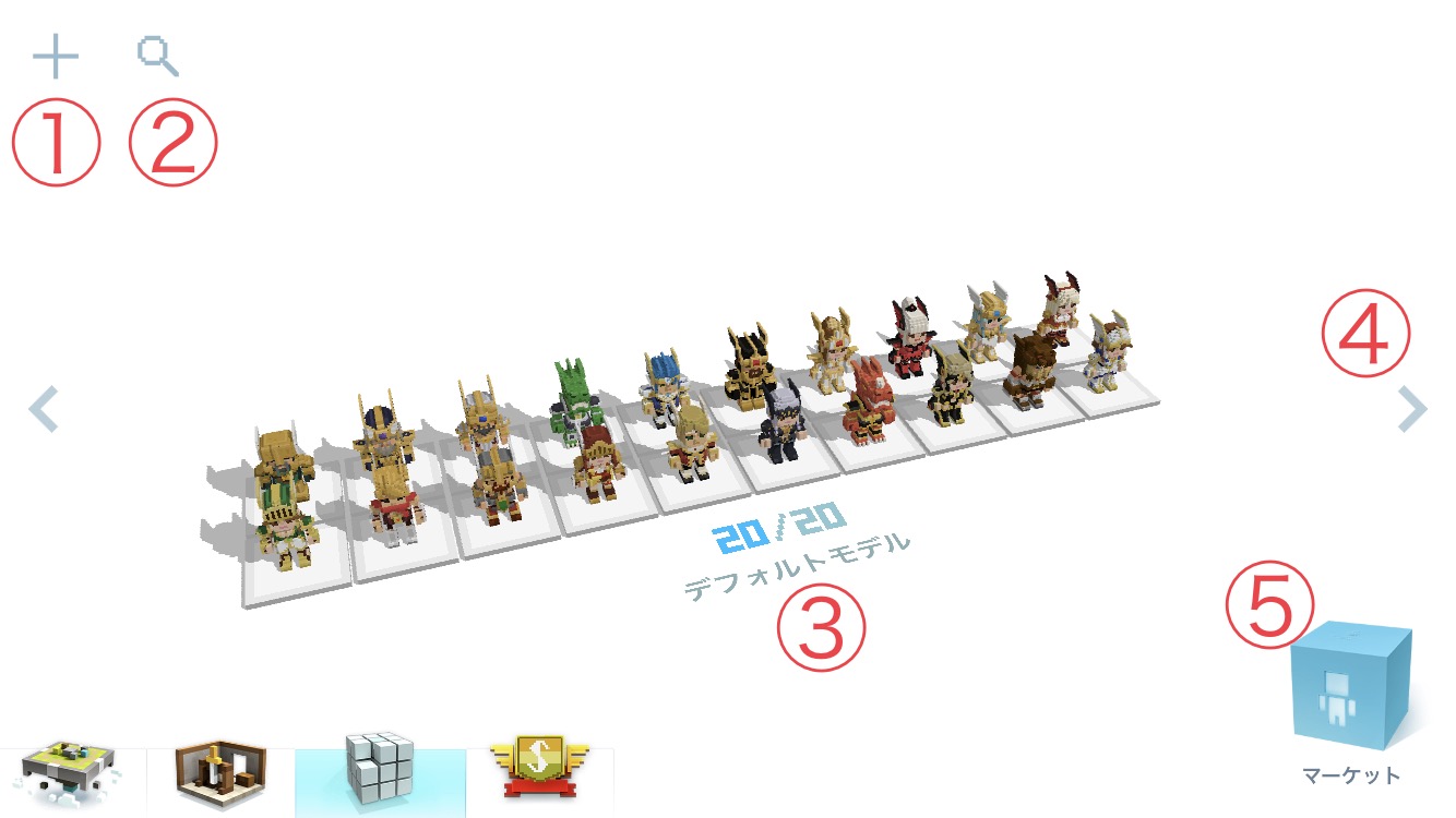 左右の矢印を押すとオリジナルモデル、ダウンロードモデル一覧に切り替わります。