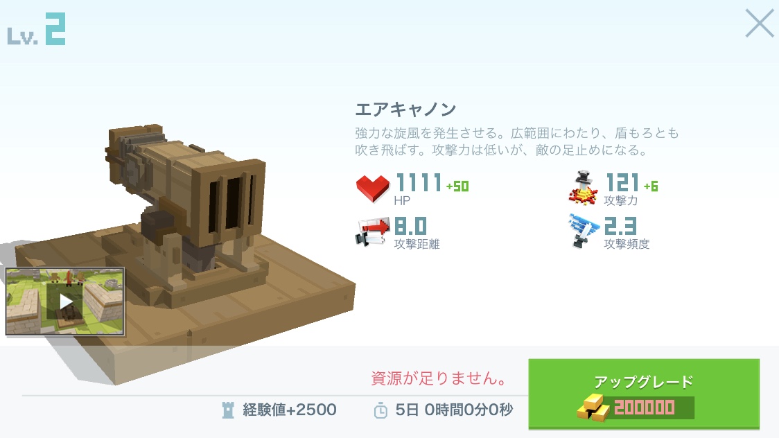 | Lv | HP | 攻撃力 | 費用(G) | LvUP時間 | 獲得Exp | |