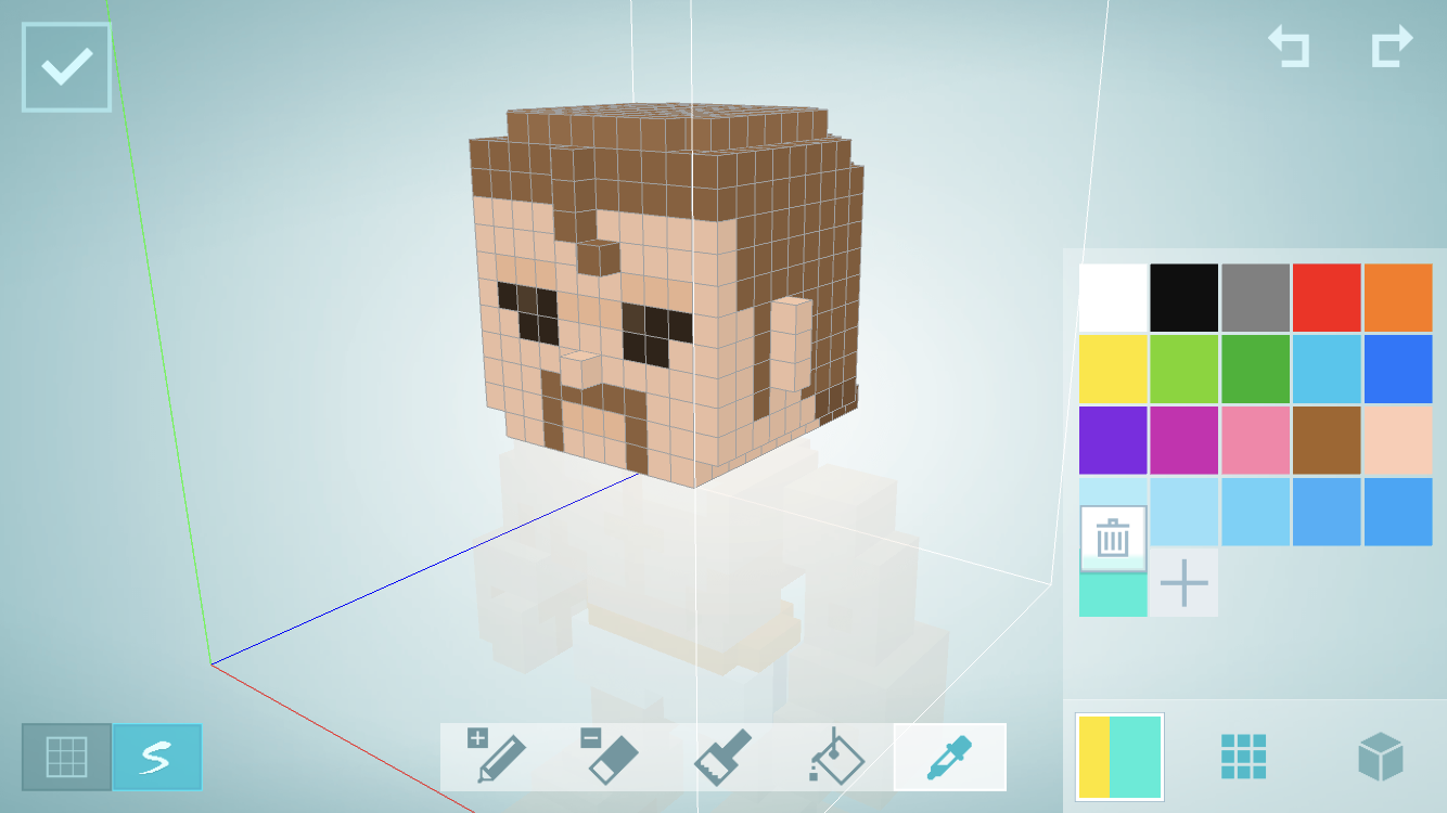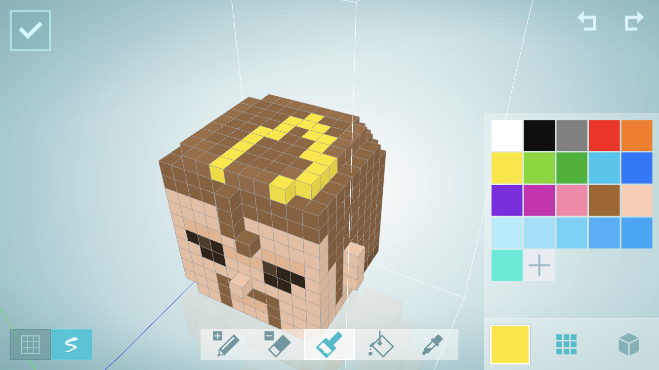 モデルは頭、胴体、肩、腕、手、足とパーツがわかれていて、それぞれ四角い枠の中にボクセルを作ることができます。