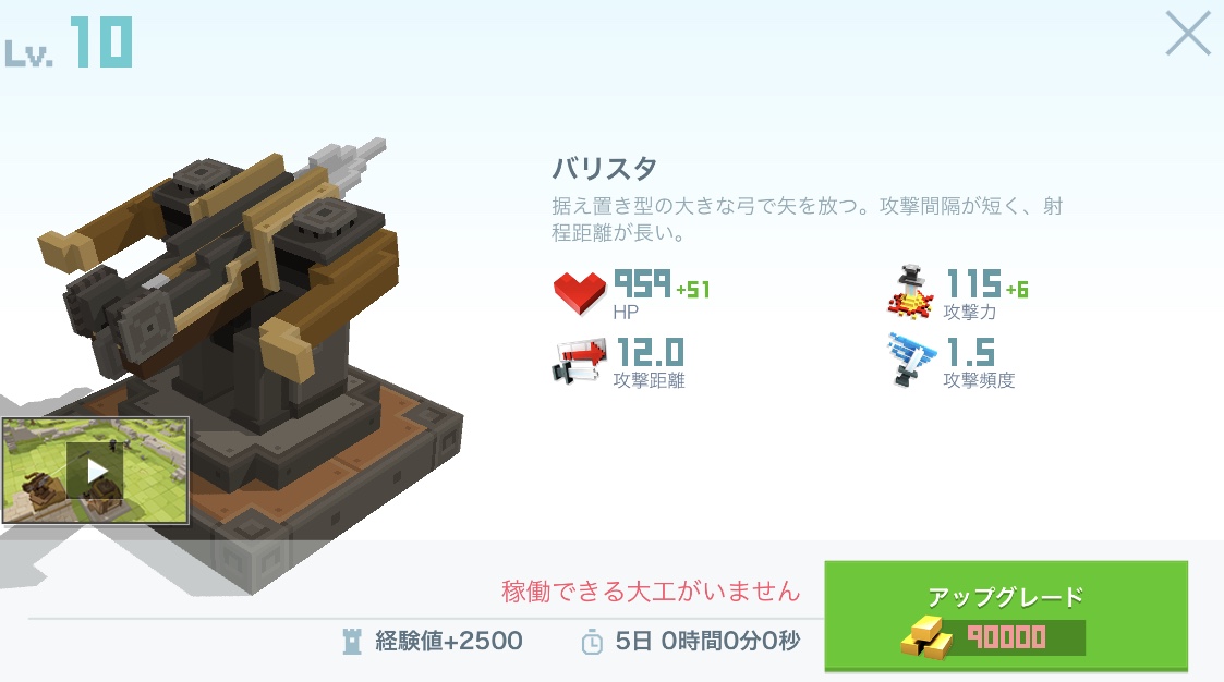 | Lv | HP | 攻撃力 | 費用(G) | LvUP時間 | 獲得Exp | |