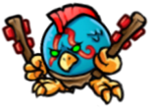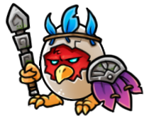 - 卵の殻をヘルメット代わりにかぶるこの戦士は接近攻撃に対する抵抗力がある。
