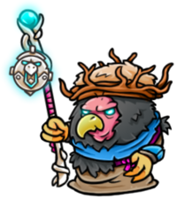 - 元々いがみ合いの多かったバード族全体をまとめた初めての王。その心は広く多くの者が慕っている。一方バード族を脅かす外敵には容赦がなく、その魔法を炸裂させる。カードがしばらく使えなくなる強力な魔法だ。