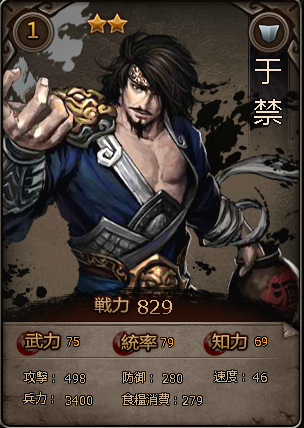 開戦効果;開戦後、3ラウンドの間、味方全ての盾兵部隊に火焔バリアを張り、40%の技能ダメージを防ぐ。