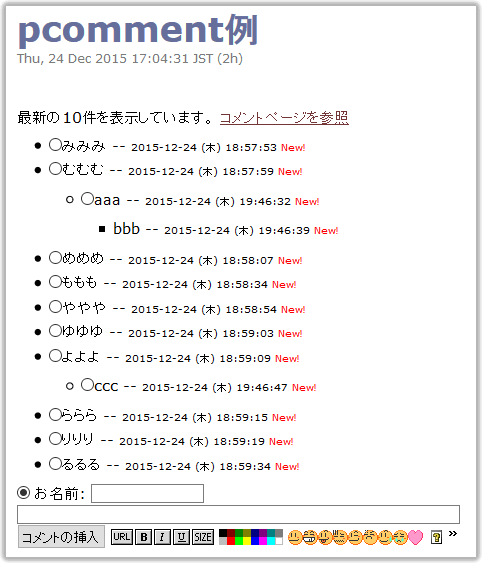 #pcomment(サンプル掲示板,reply,10)