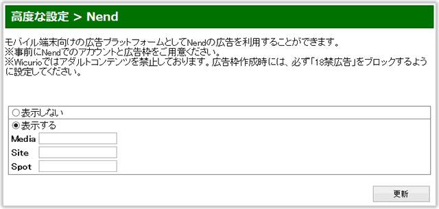 - ご自身のNend広告掲載を希望される場合は、表示する/しないの選択は必ず「表示する」を指定してください。