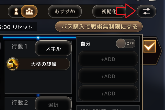 1. 戦術画面右上のアイコンで設定を開く