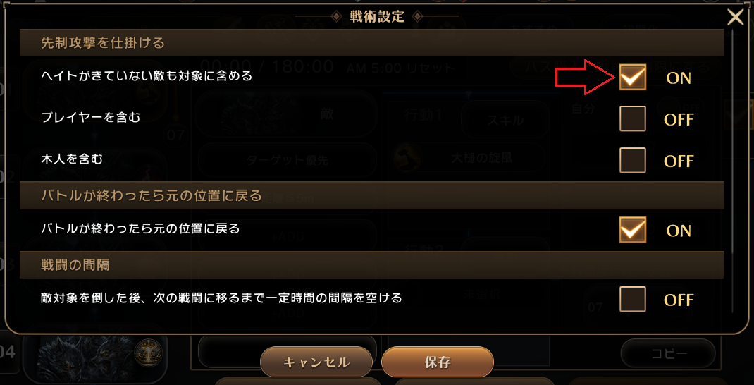 2. 一番上にある「ヘイトがきていない敵も対象に含める」にチェックを入れて保存する