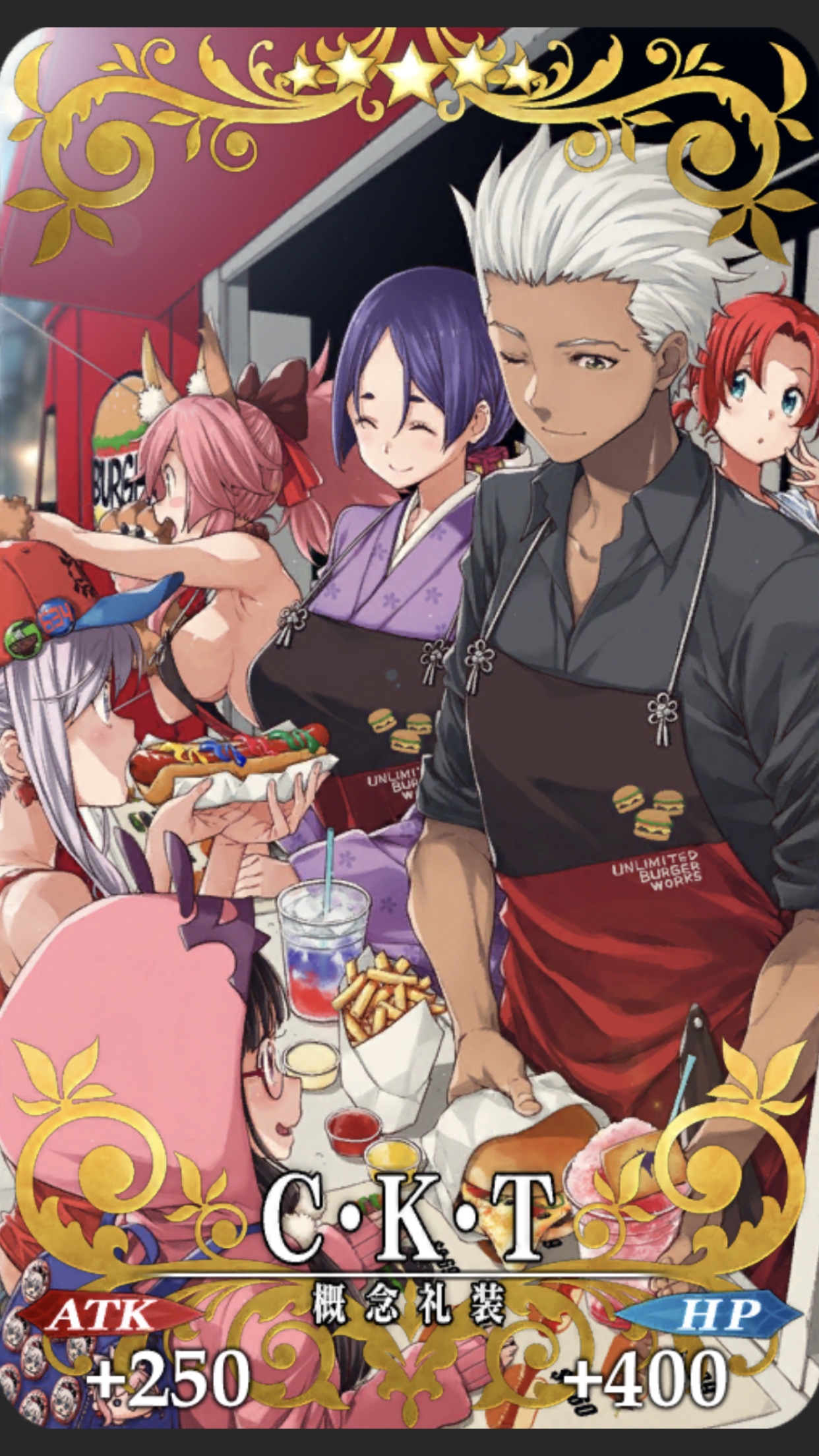 | C・K・T | ×0~3 | 自身のQuickカード性能を10%アップ&Artsカード性能を10%アップ&宝具威力を10%アップ | |||