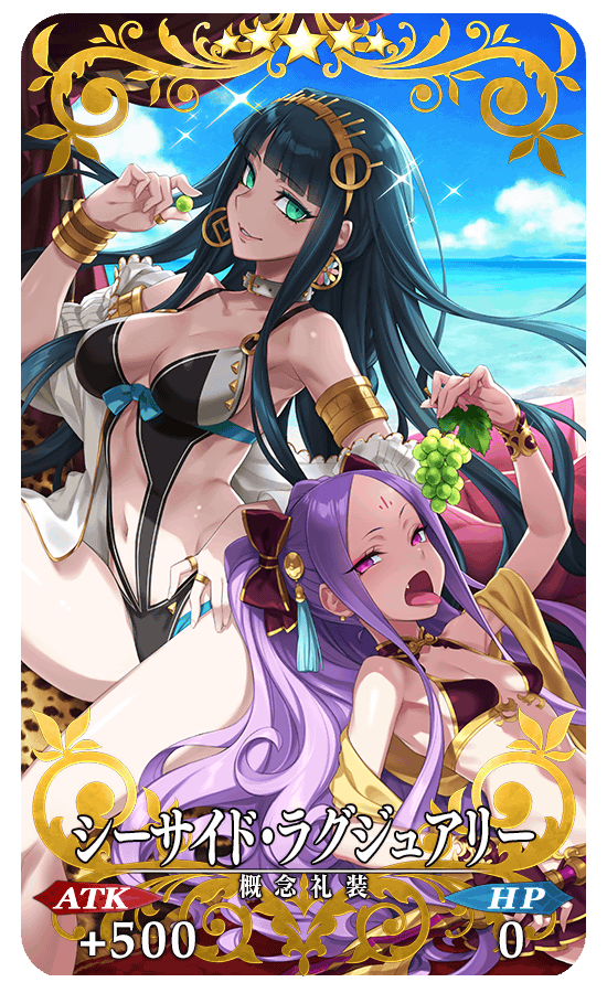 | 解説 | 真夏の海のきらめきは、 高貴な者の心もくすぐるもの。 気まぐれに果実を嗜むその姿は、 この夏を贅沢に彩って――― | ||||