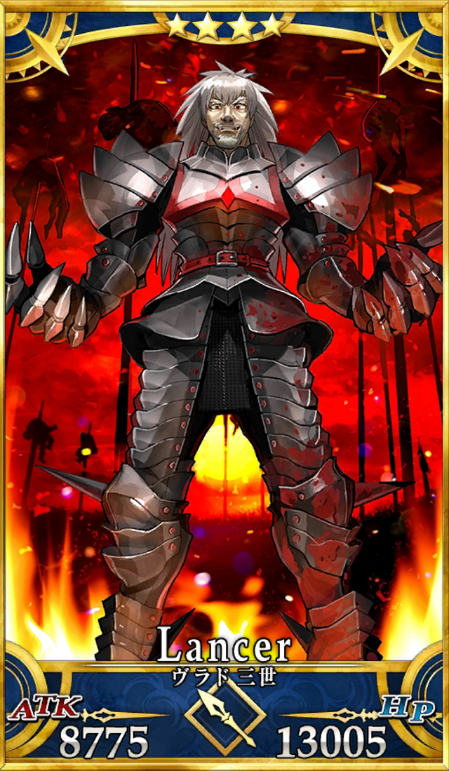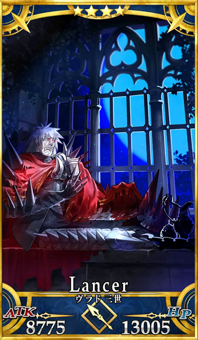 ターゲット集中効果から盾役としても活用できるが、ヴラド三世自身は高HPだが回避スキルを持たず、倒れてしまうとスター獲得効果が活用できなくなる点に注意。