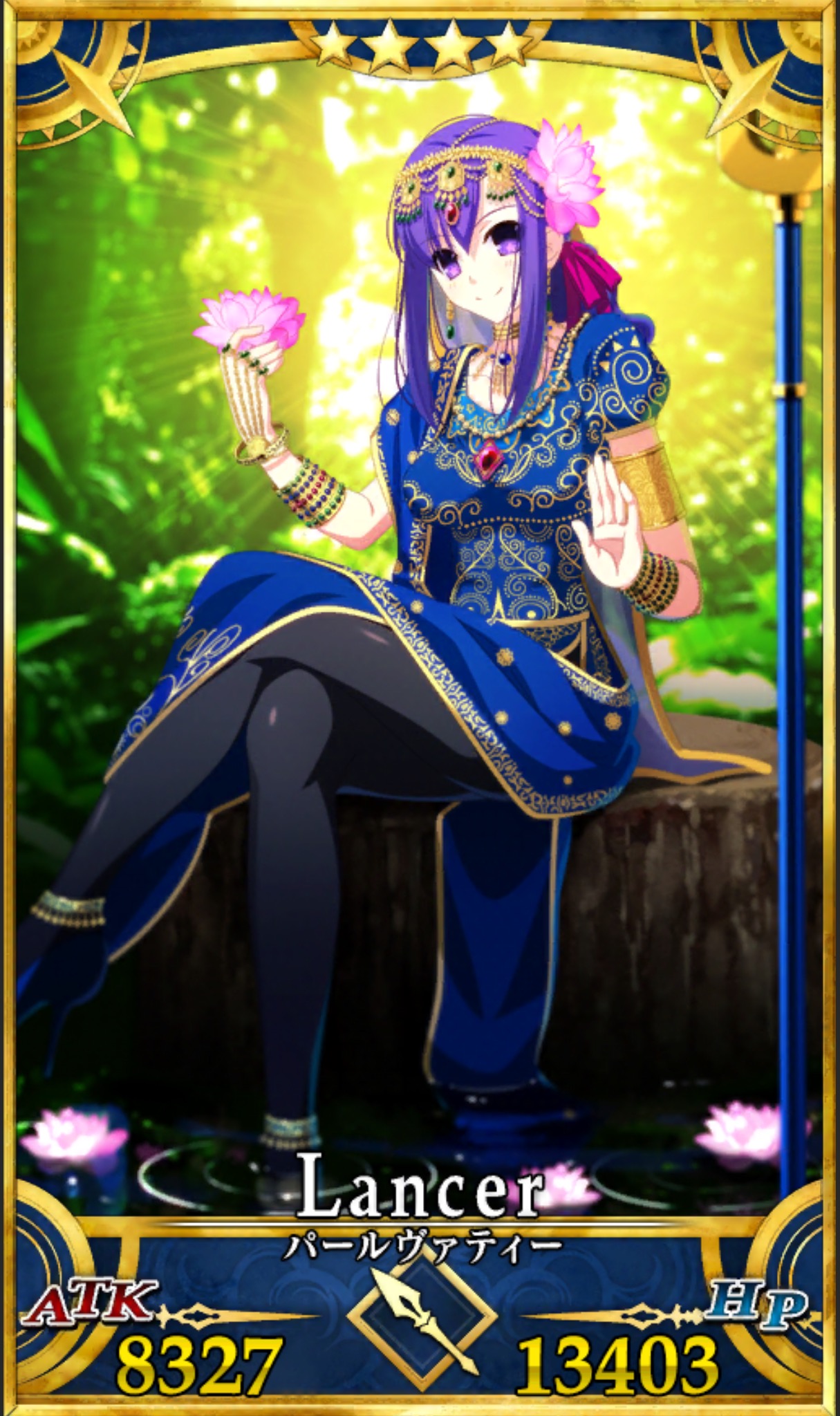 No. 名前 Lv.M HP ATK 筋力 耐久 敏捷 魔力 幸運 宝具 Q A B 保有スキル 183 パールヴァティー 80 13253 8127 D C D B B EX 2 1 2 イマジナリ・アラウンド[EX]