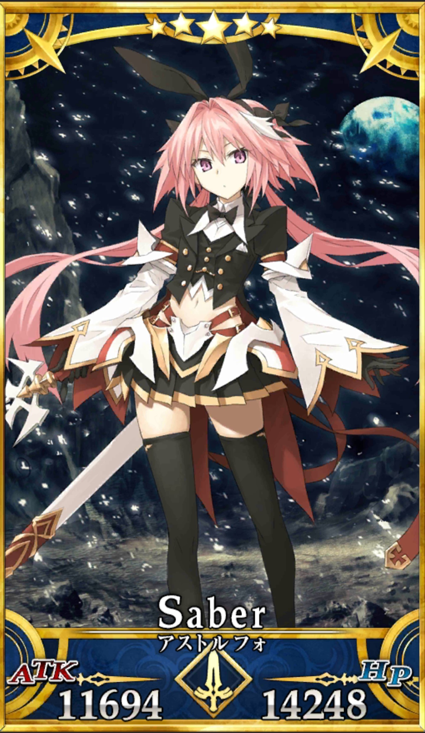 | アストルフォ(剣) | 14248 | 11694 | 2 | 2 | 1 | Q/単 | 破却宣言(強)[B+] | 恐慌呼び起こせし魔笛[C] | 威風堂々たる凱旋 [EX] |