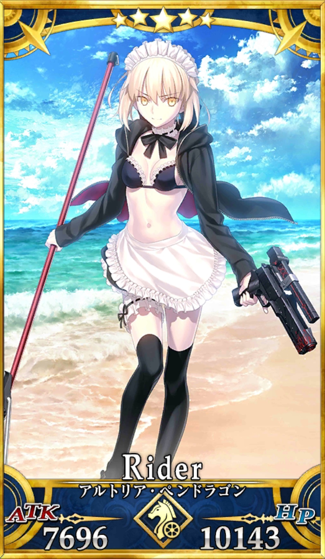 No. 名前 Lv.M HP ATK 筋力 耐久 敏捷 魔力 幸運 宝具 Q A B 保有スキル 179 アルトリア(騎オルタ) 90 14256 10776 B C B A B A 2 2 1 サマー・スイーパー![A]