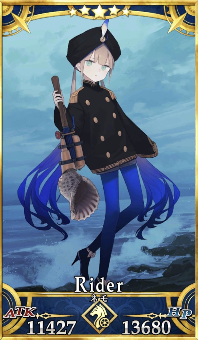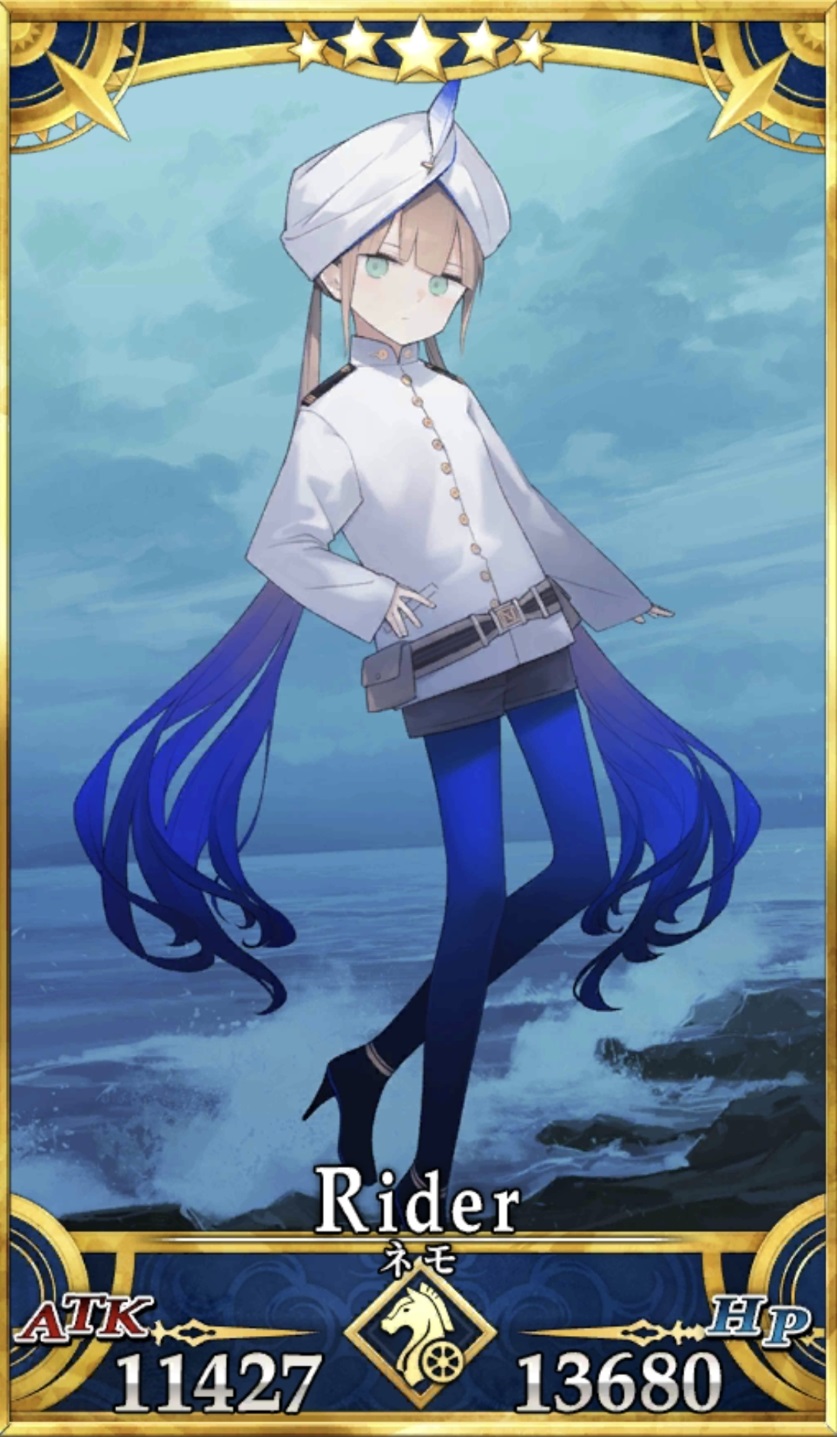| ネモ/ノア | 12830 | 11619 | 1 | 3 | 1 | A/全 | 救世の航海者[B] | 信仰の加護[EX] | ゾーハルの輝石[EX] |