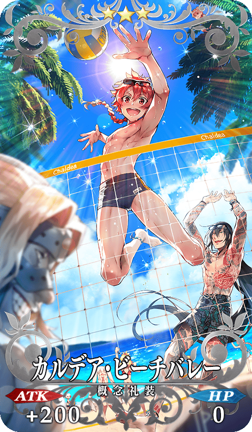 | カルデア・ビーチバレー | ×0~3 | 自身に必中状態を付与&スター発生率を2%アップ&クリティカル威力を2%アップ | |||