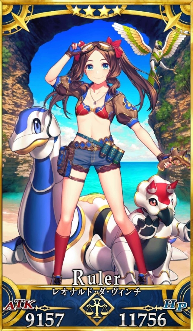 | ダ・ヴィンチちゃん(裁) | 11756 | 9157 | 1 | 2 | 2 | B/単 | 夢見る機械[A] | トレジャー・チェッカー[B] | 黄昏に輝く[EX] |