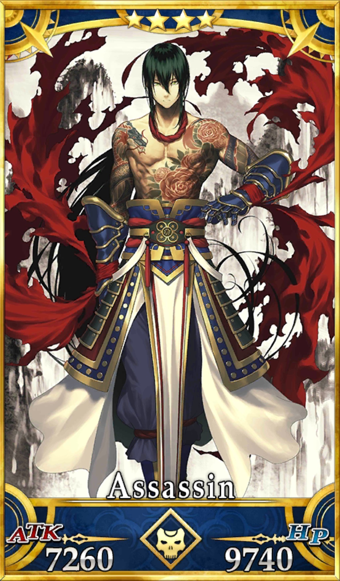 亜種特異点Ⅰのストーリーを進める事によって真名開放されるが、それまではマテリアルも閲覧不可となっている。(絆レベル自体は通常通り上がるので絆レベルを上げてから真名開放するとその分のマテリアルもまとめて開放される。また、ストーリークリア後に召喚した場合は最初から真名開放済みになる) - ステータスは☆4アサシンの中ではHP偏重のQuick型アサシン。