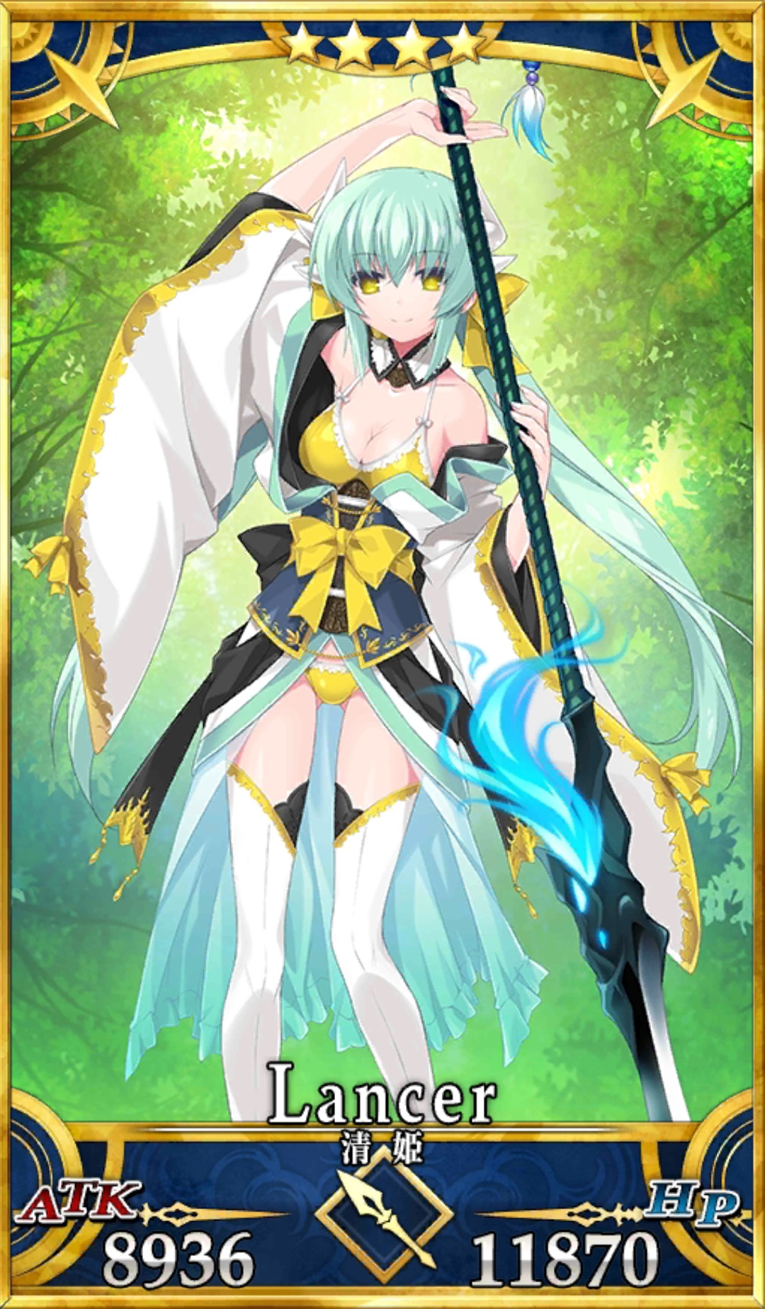 No. 名前 Lv.M HP ATK 筋力 耐久 敏捷 魔力 幸運 宝具 Q A B 保有スキル 134 清姫(槍) 80 11870 8936 D D B E A+ C 2 1 2 情熱の炎夏[A]