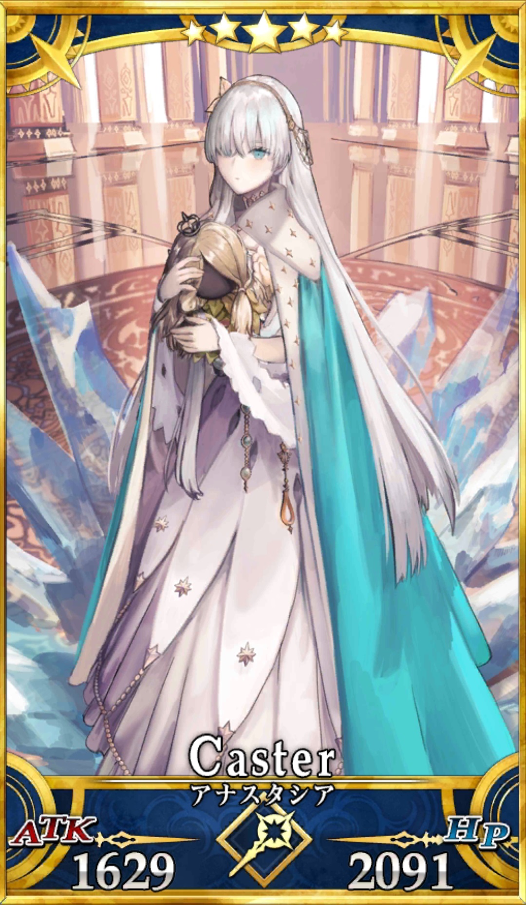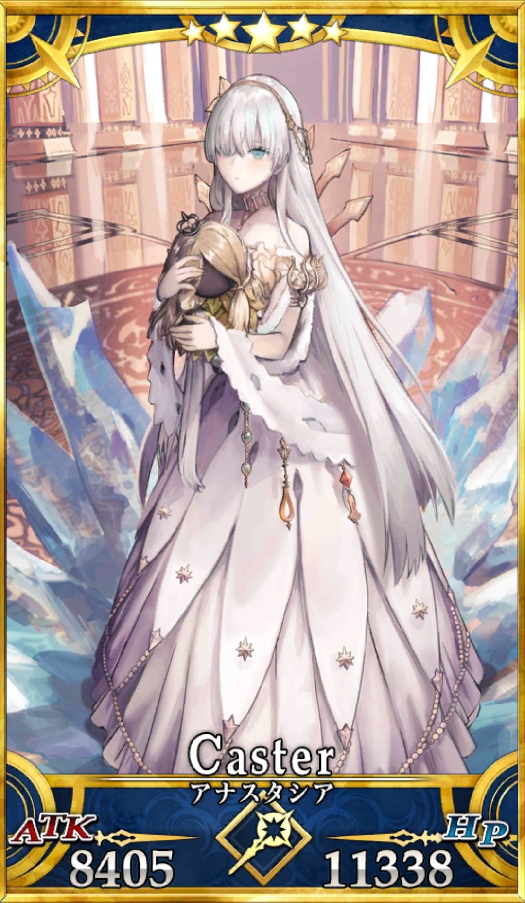 - ☆5キャスター。2018年4月4日に「永久凍土帝国アナスタシア」実装に伴い、恒常枠のサーヴァントとして実装。