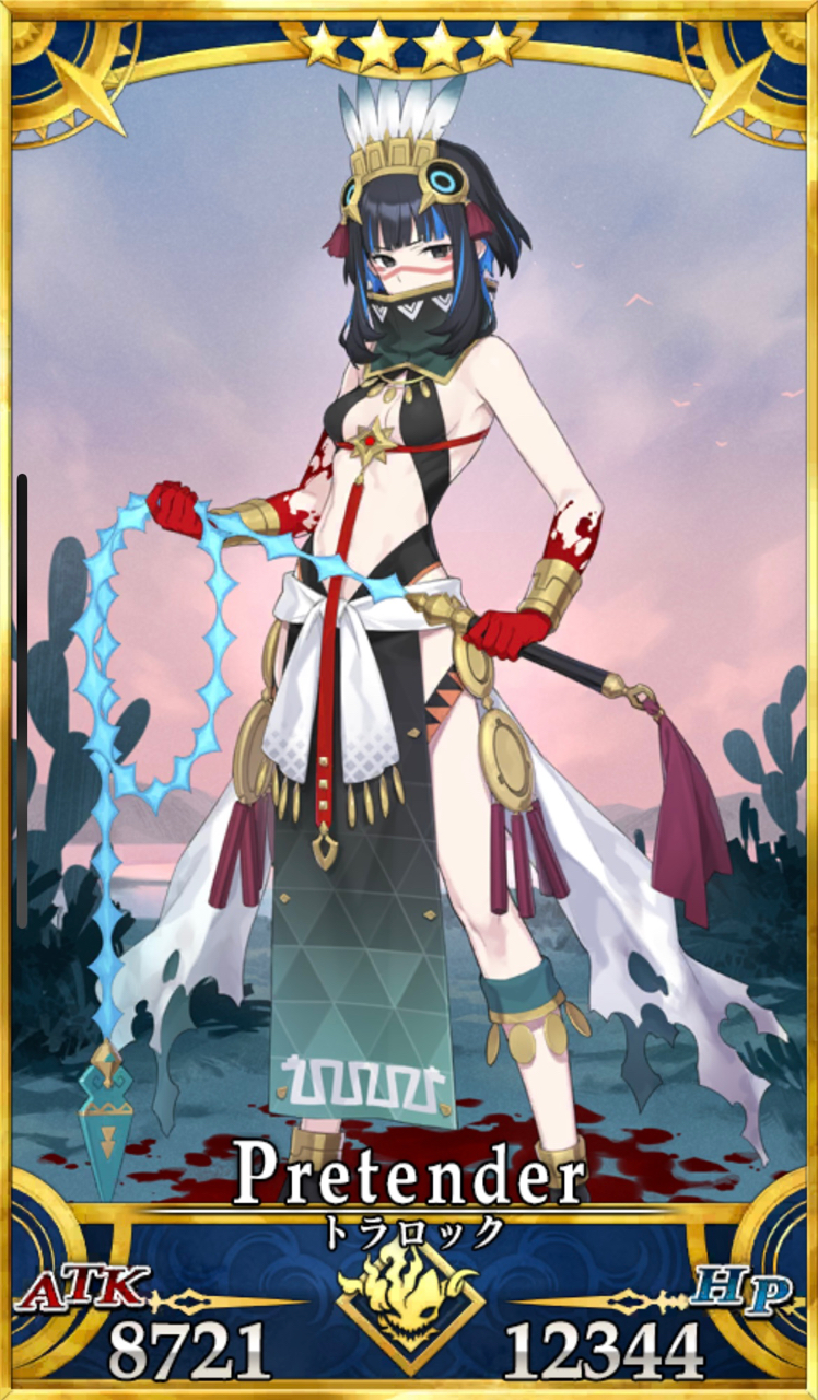 2023年1月31日、「黄金樹海紀行 ナウイ・ミクトラン」後編シナリオ追加に伴い、恒常実装された。- ストーリー前編での敵対時はルーラー、またはバーサーカーだったが、まさかの歴代初の秩序・善属性プリテンダーでの実装となる。