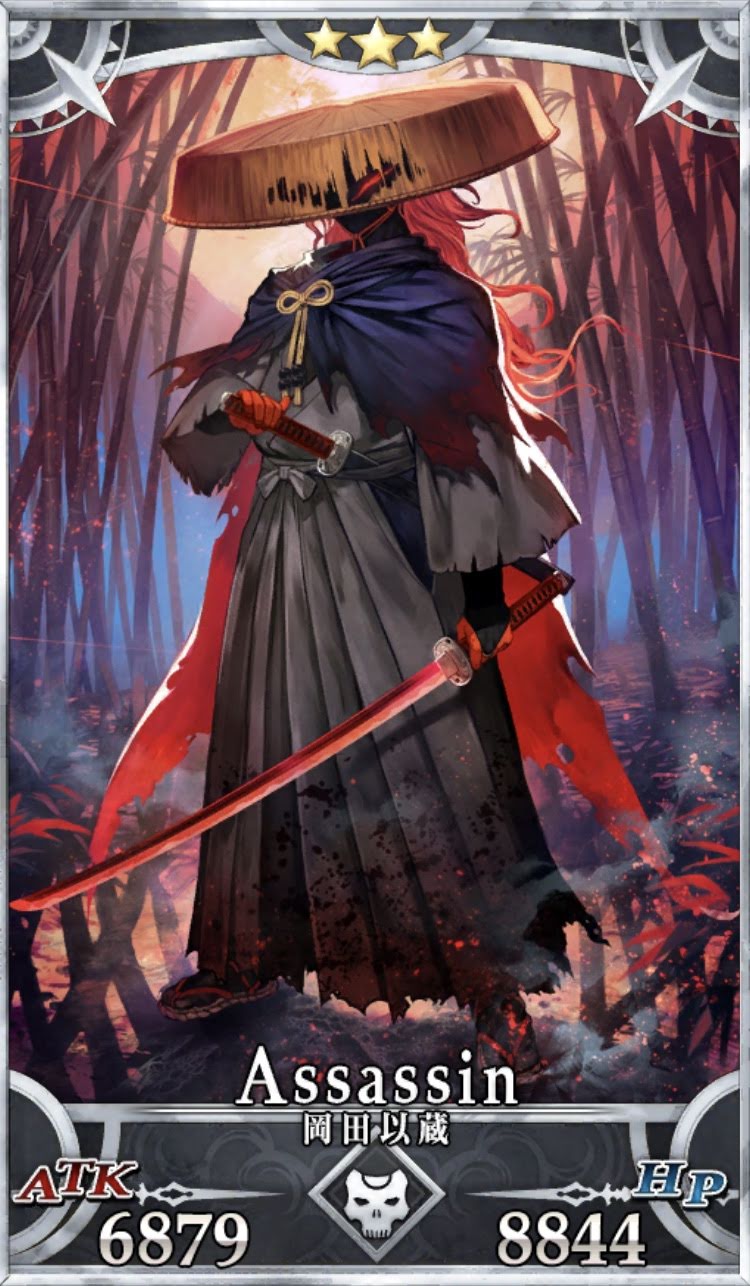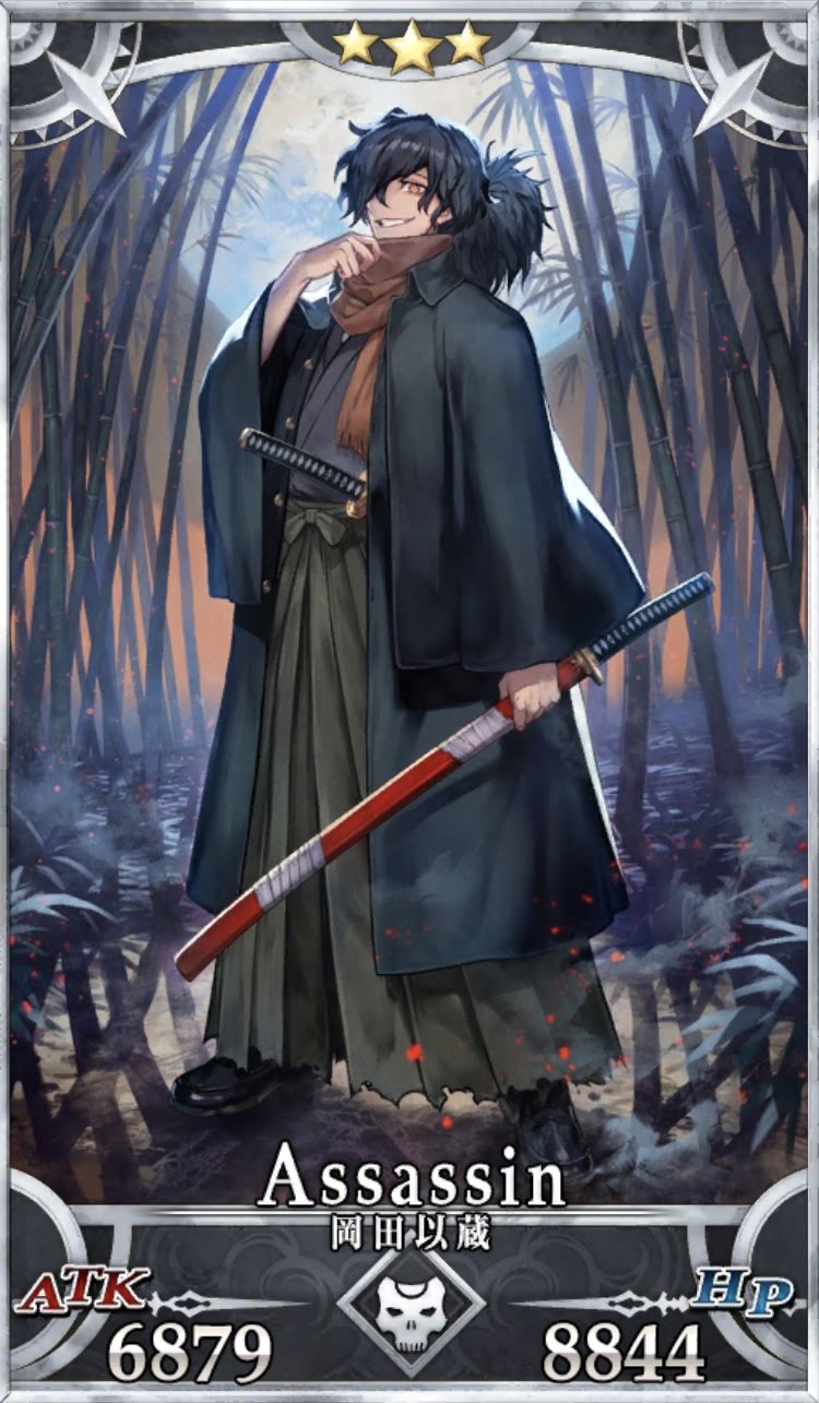 幕末に凶刃を振るった「人斬り以蔵」。2018年6月13日より「ぐだぐだ帝都聖杯奇譚-極東魔神戦線1945-」の開催に伴い実装。- FGO初の期間限定の星3サーヴァント。イベント終了後にストーリー召喚に追加されないだけではなく、フレンドポイント召喚にも入らない点に注意。