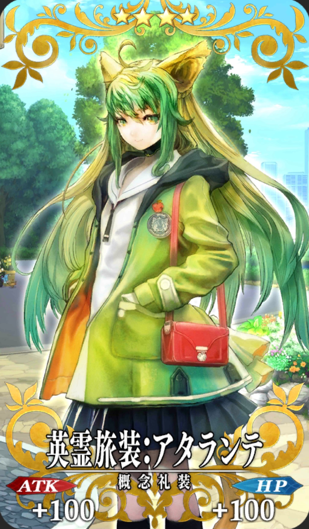 | 英霊旅装:アタランテ | ×4 | クエストクリア時に得られる魔術礼装EXPを50増やす | |||