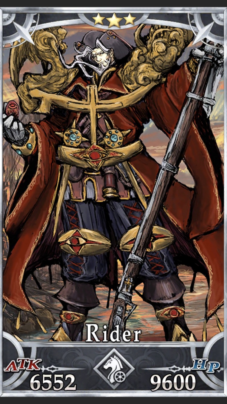 - 約半年ぶりに実装された星3であり、同レアライダーでは初の新規追加かつB宝具持ちとなる。
