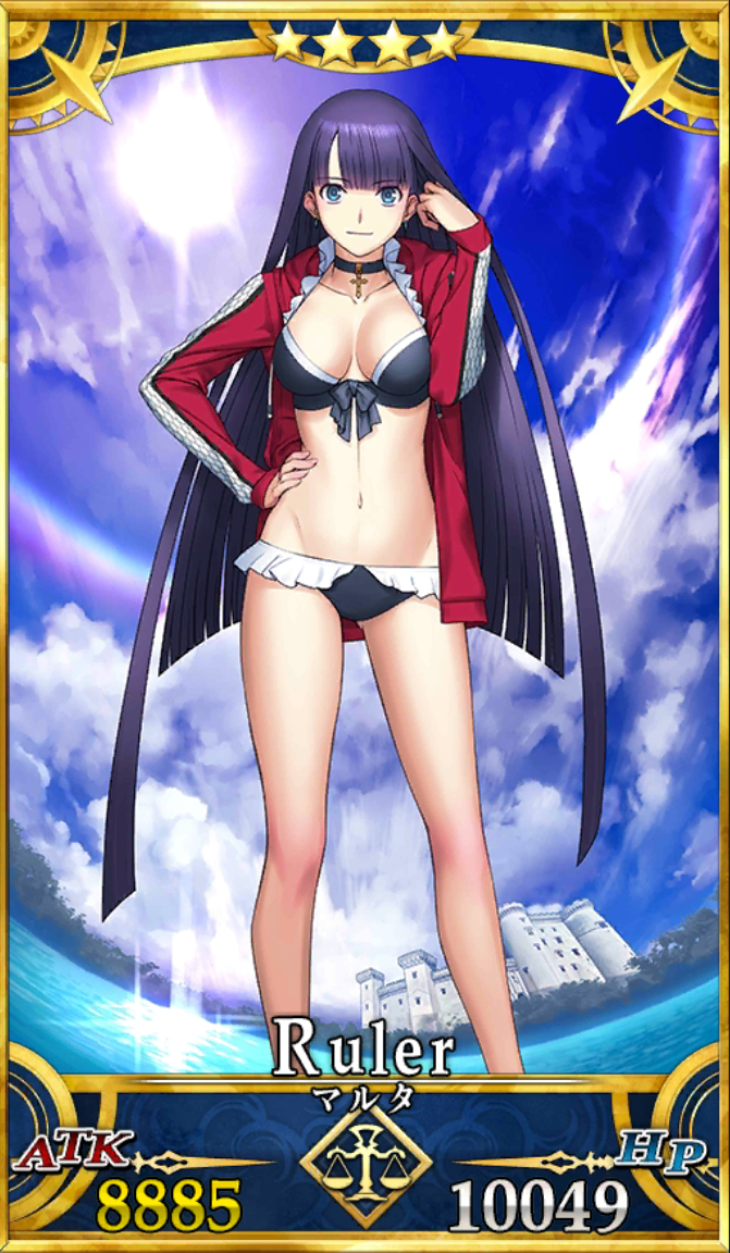 - 2016年8月22日より期間限定でガチャに実装。ジャンヌ、天草に続く3体目のルーラーで、既存の二人はどちらも☆5なので初の☆4のルーラーとなる。