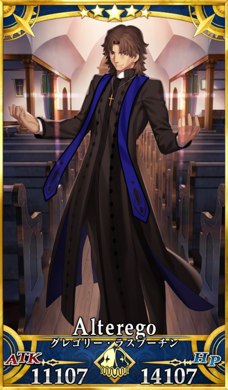 | ラスプーチン(言峰) | 14107 | 11107 | 2 | 2 | 1 | A/全 | 信仰の加護(独)[A+] | 悪心祝祭[A] | 死なずのバールー[EX] |