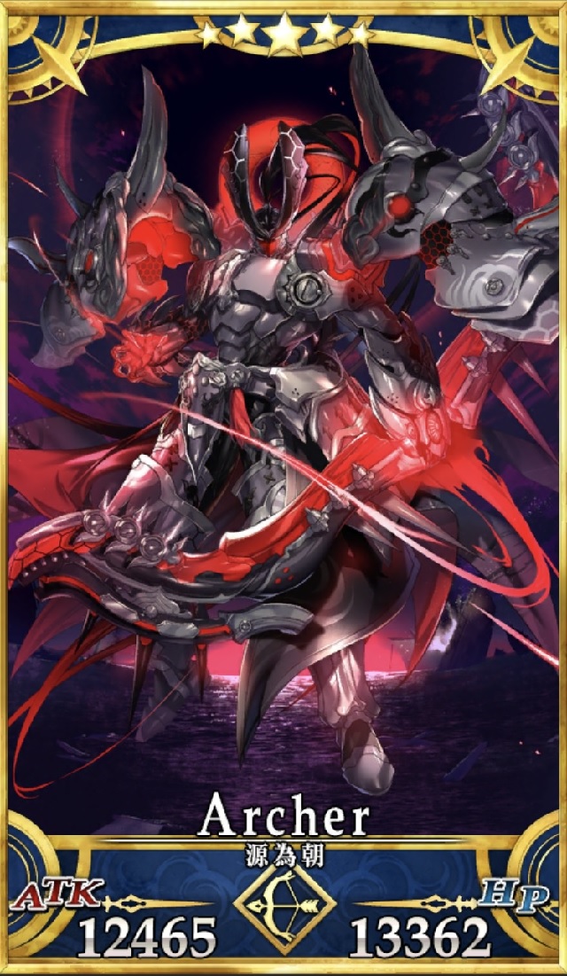 | 源為朝 | 13362 | 12465 | 1 | 2 | 2 | B/全 | 鎮西八郎[A] | 不屈の弓射[B] | メカニカル弓術[EX] |