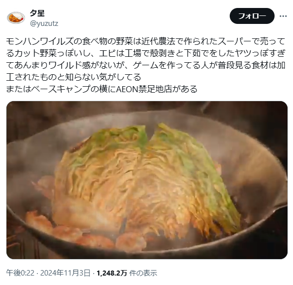ワイルド感が無い食事を見たプレイヤーが放った言葉より。
