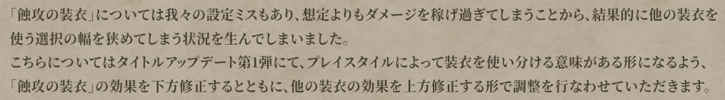 この文章の4日後に騎乗ヘビィを完全に潰しておいて、同アプデでアッパーと呼べる内容は「・「ファーストショット」の対象弾に特殊弾が含まれていない不具合を修正します。」のみである。