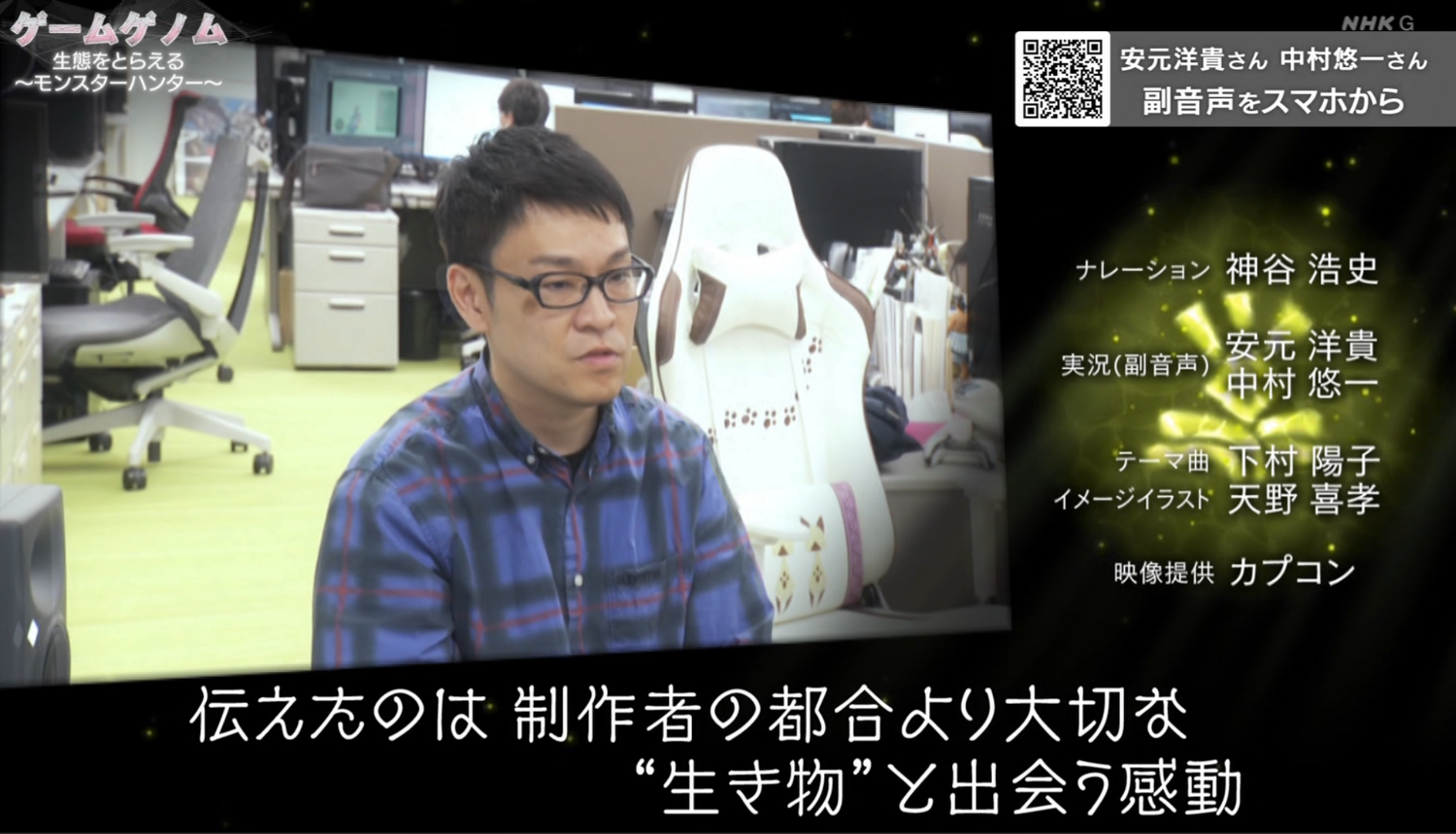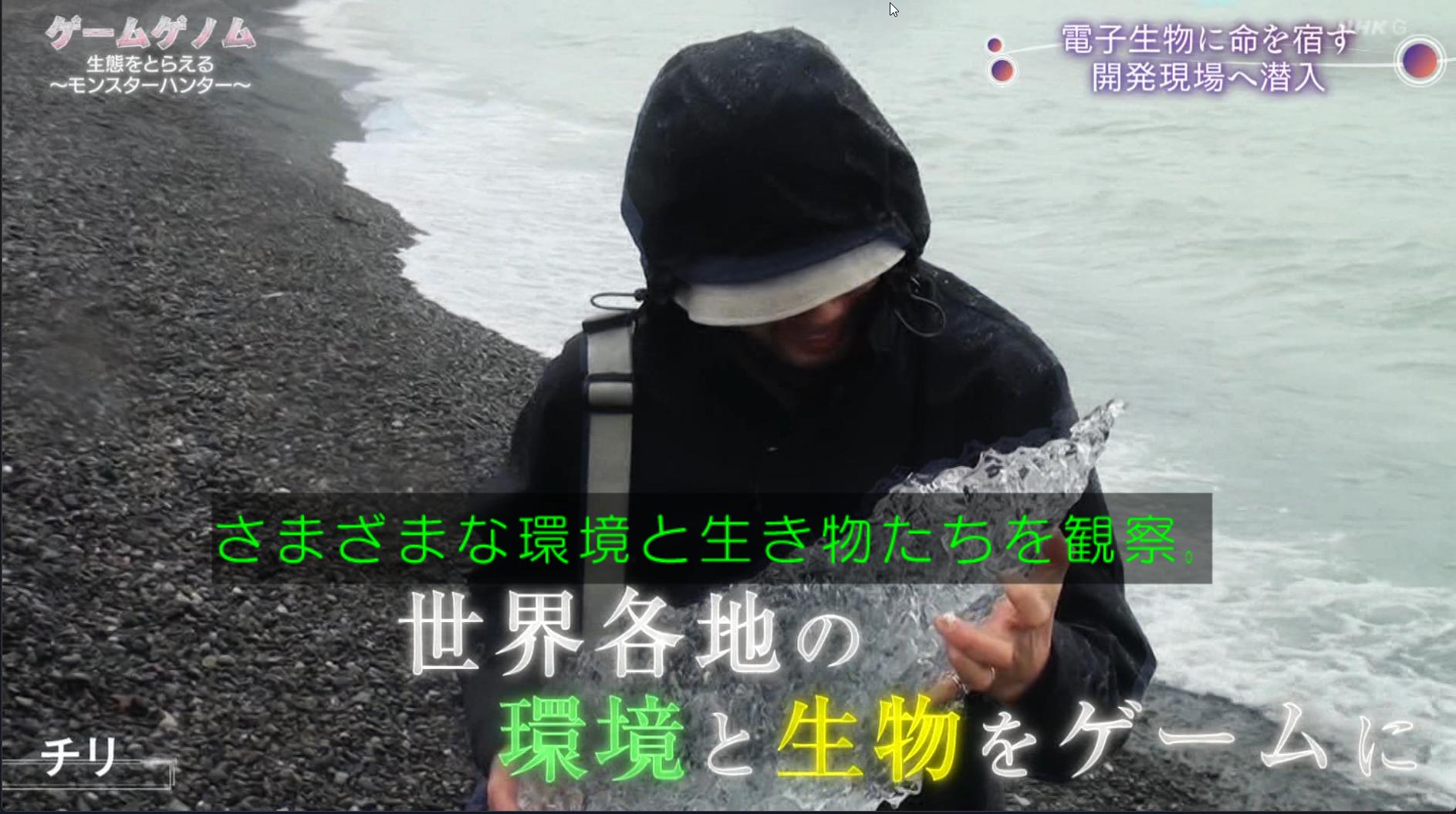 巨大なモンスターと対峙しハンティングに挑む独自の世界観が多くのプレイヤーを魅了する。特徴は作り込まれたモンスターの“生態”だ。生息地や食べ物に留まらず、擬態したり死んだふりをするなど動物さながらの行動がリアルに描かれる。生態を読み解くことが、狩猟成功の鍵となるのだ。今回の見どころは、特別に許されたゲーム開発現場への取材。電子生物であるモンスターに命を吹き込む工夫やこだわりの数々に密着取材で迫る。