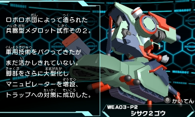最新鋭の兵器型メダロットとして登場したシサク1ゴウがストーリー第5章でバージョンアップして登場。