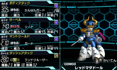 | 部位 | パーツ名 | 装甲 | 成功 | 威力 | 充填 | 冷却 | 回数 | 攻撃対応 | スキル | わざ | |