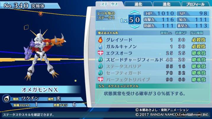 消費SPが30と重く、最大の約3分の1を使ってしまうがその威力は究極体そのもの。