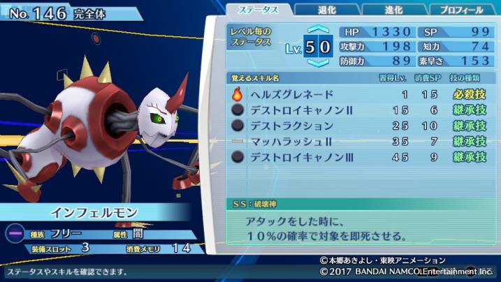 | 各種継承技 | 光、闇、水属性の中から一つは欲しい。他のデジモンと要相談 |