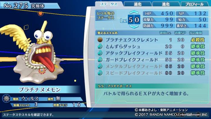 なお、耐久力だけならメモリが10低いプラチナスカモンと同じである。
