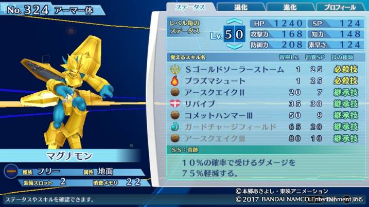 知力型からの要塞化型か、物理攻撃力の高いパワー型か、相手からすれば読みにくい事もマグナモンの強みの一つと言えるだろう。