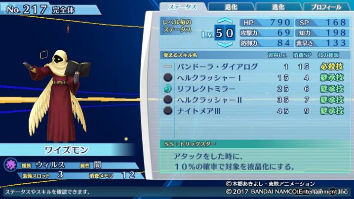 知力こそ大幅に勝っているが、あちらは優秀な闇属性大貫通持ち。SSもしっかりと機能しており、更に耐久もワイズモンより高い。