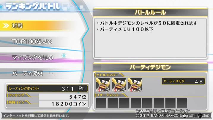 対戦に勝利するとレーティングポイントが上昇しランキングが上昇。