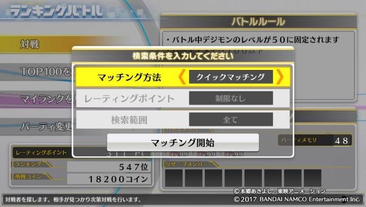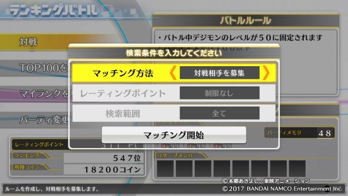 対戦相手を探すとは異なり範囲指定は不可能。