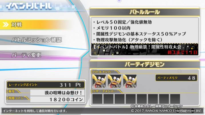 相手デジモンが3体しかいない分異常に強力に設定されている為注意。