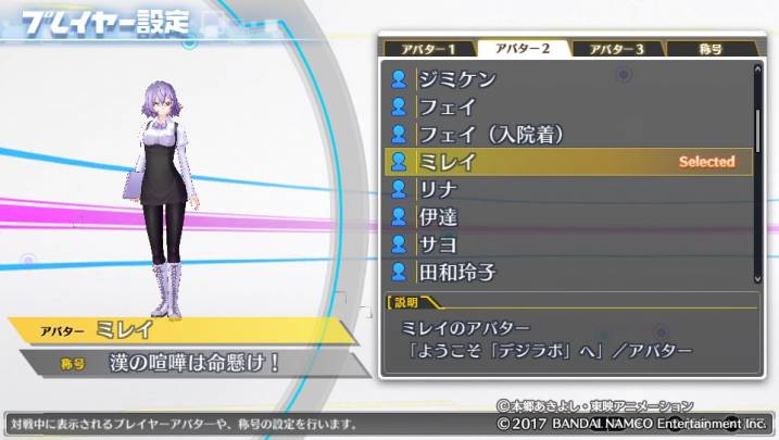 プレイヤー設定では対戦に使用する際のアバターや称号を変更できます。