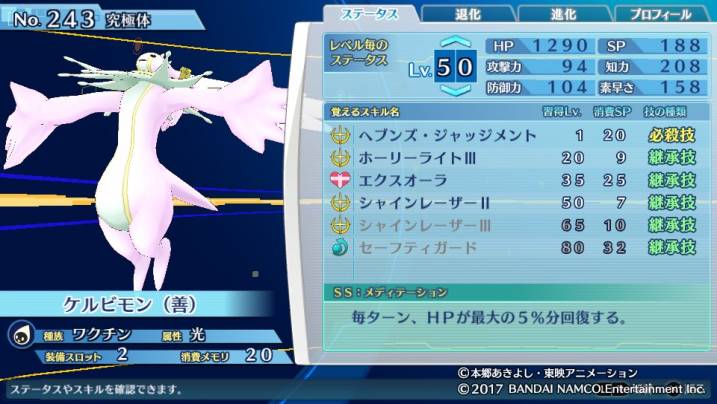 必殺技は威力90の光属性全体魔法『ヘブンズ・ジャッジメント』。