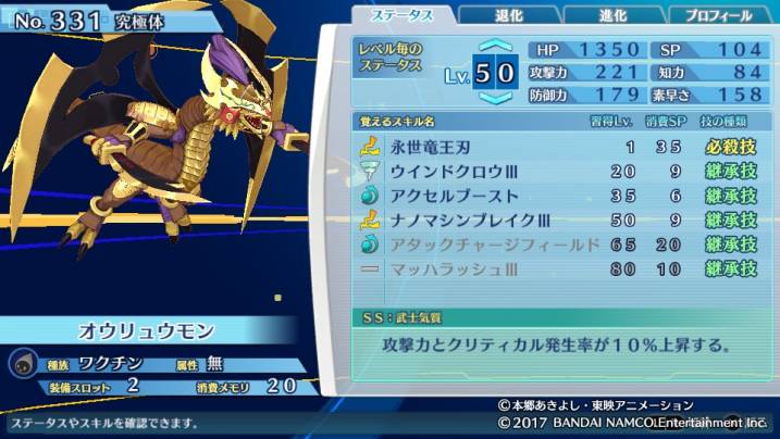 スサノオモンのメモリが25と最大値の為、メモリ的に採用しやすいのはオウリュウモンの良さだろう。